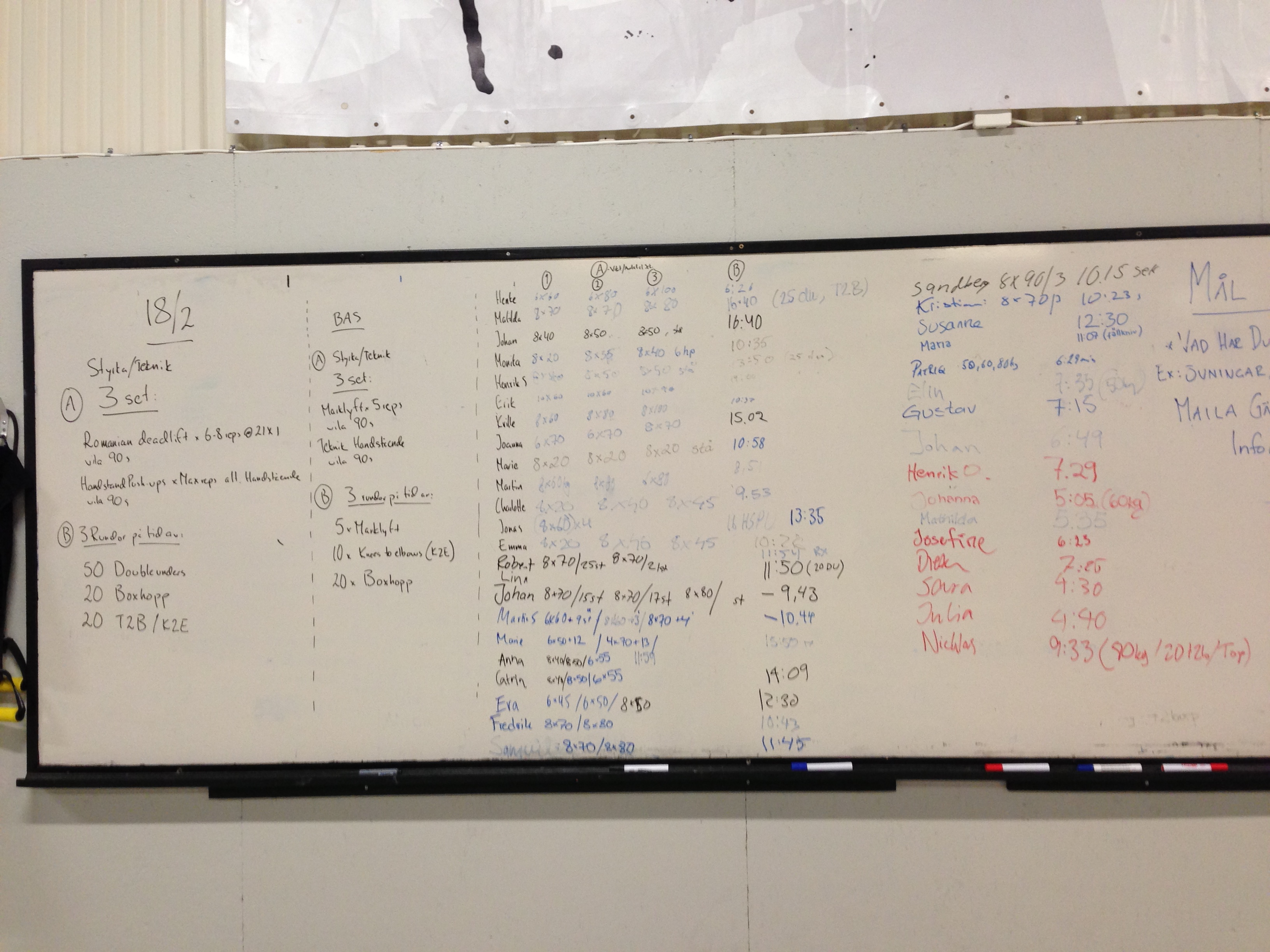 Egentligen var det 10 st knee-to-elbows, men valde att öka lite eftersom det kändes bra idag. T2B och box jumps efter varandra gör sitt och det blir riktigt härlig puls. Tog faktiskt pulsen så när inpå efter att jag slutfört metconen och låg på enligt iPhone-appen runtastic Heart Rate på en puls på 168 slag i minuten. En härlig genomkörare efter en halvkrasslig helg.